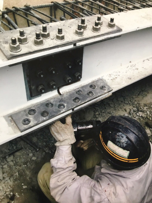 鋼材を組み合わせて直ぐに強く締め込むと、接合部分に遊びがなくなってしまい、締め付け前の箇所にズレが生じてしまうからです。